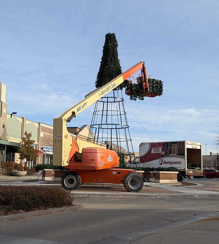 Shadow Lake Towne Center’s Christmas tree is going up! Here’s the start of the tree and its 30,000 lights! -